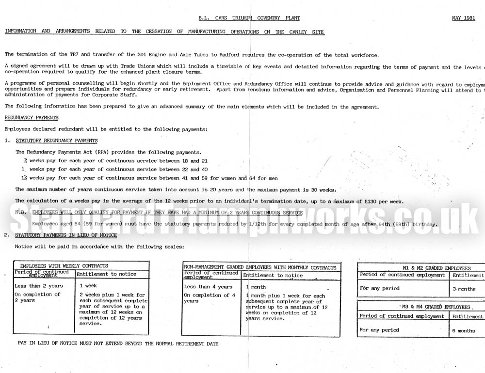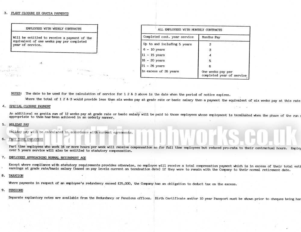 With thanks to Martin Murphy for sending this document through. Dated May 1981, it sets out the Redundancy payments for employees.
