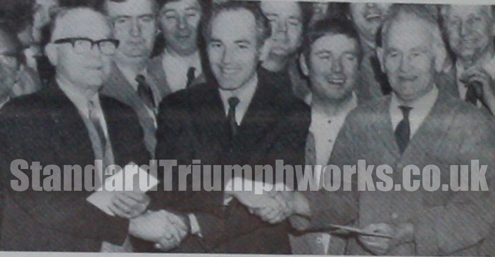 On behalf of their colleagues, Roy Smith, Deputy Chief Inspector, Assembly Hall, presented a sum of money to each and thanked them for their good services. Both retirees intend to remain in Coventry, and Bill Baker has a caravan towed by his Austin Maxi, while Charlie Johnson will spend his leisure in garden and handicraft work.