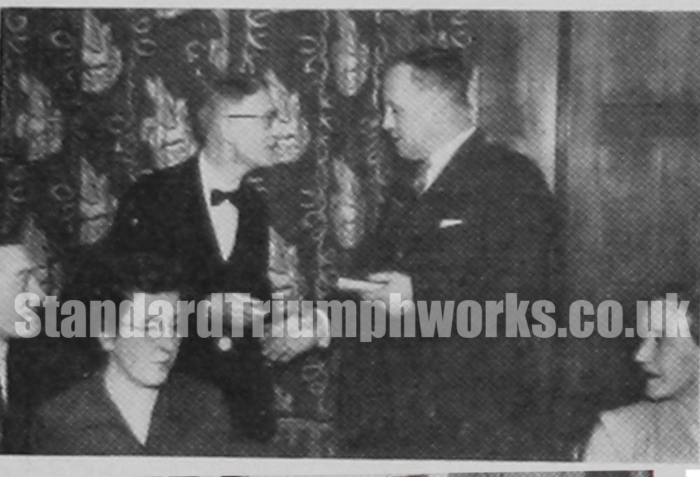 The former Chief Inspector of the Machine Shop and Chassis Departments, Mr E. Knight (right), was presented with a wrist watch on behalf of the department by the oldest employee, Mr W. Bateman, at their annual dinner on Friday, 11th January.
