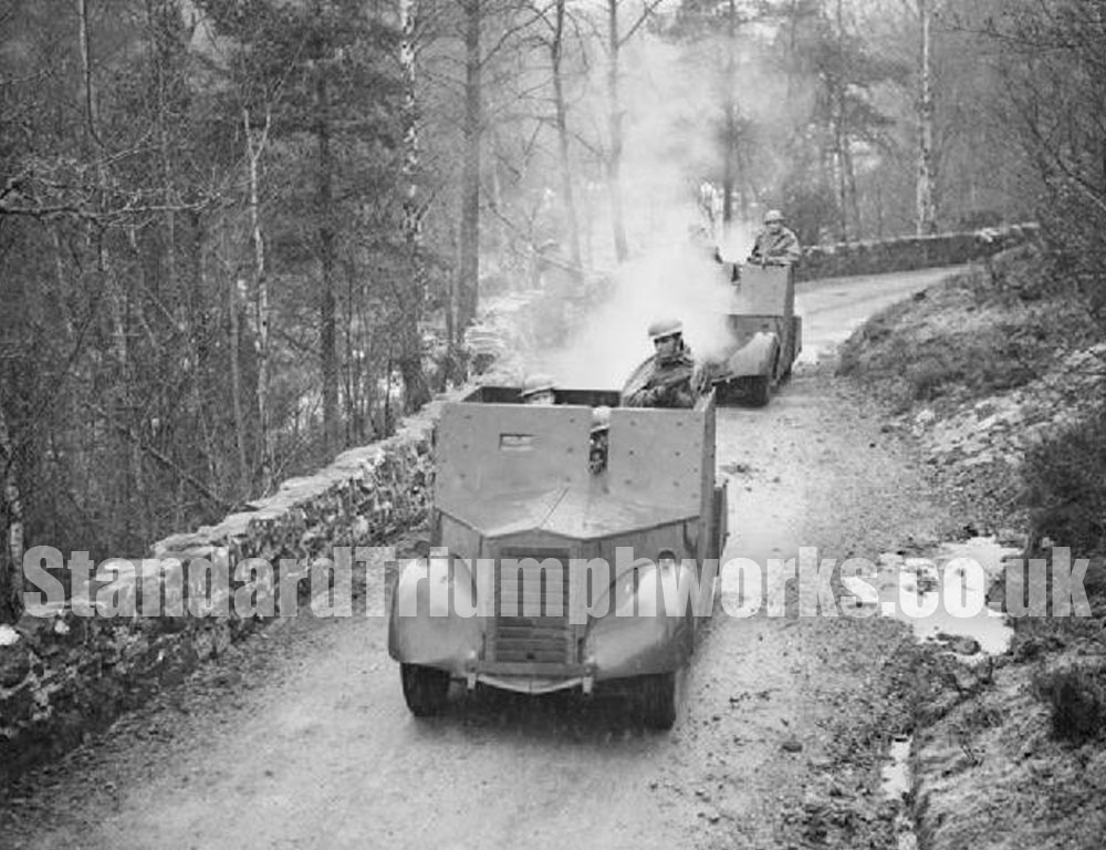 The first version of the vehicle was built in 1940 by Standard Motor Company at the instigation of Lord Beaverbrook, then Minister of Aircraft Production (hence the name Beaverette). It was based on commercial car chassis, on which a simple riveted armoured hull was mounted. The 11mm of steel was backed by 3 inch thick oak planks. The hull was open at the top and at the rear. The armament consisted of a Bren light machine gun, which could be fired through a slot in the casemate armour. Subsequent versions received all-around protection and a machine gun turret – an enclosed one with a Bren MG or an open-topped one with twin Vickers machine guns. Some vehicles also carried Boys anti-tank rifles. Some also had a No. 11 or No. 19 radio set. Production was stopped in 1942. About 2,800 units were delivered.