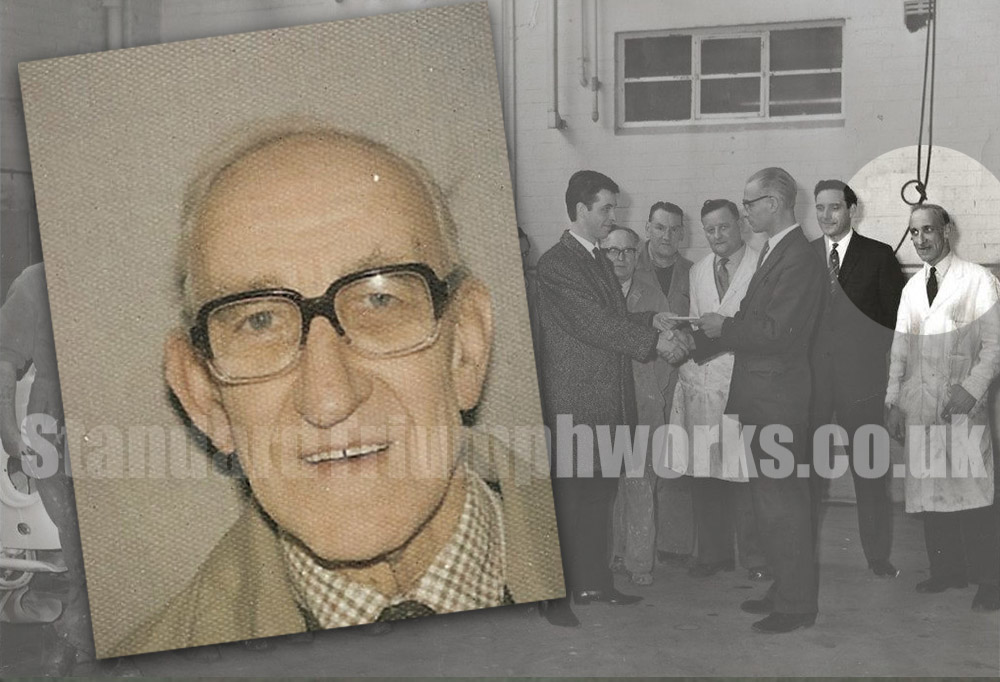 A previous entry sees a photo taken at Allesley with Dennis Skyrme leaving the company and receiving gifts from his fellow employees.