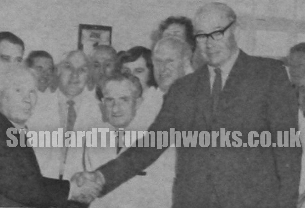 At Canley he made a lot of friends, and on their behalf, Hugh Berry, supervisor, presented a sum of money, cut glassware, and a shooting stick with umbrella. Reg’s leisure interest is golf. He played for the Company in the past, and intends to keep playing with the Kenilworth Club.