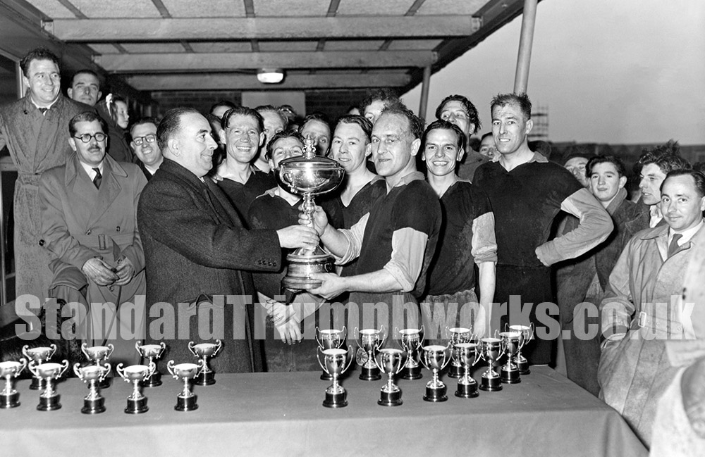 The winners are presented with the cup by Alfred Edwards (left), To the left we can see Jock Brown – later to become the Department Head at the London Service Depot, Western Avenue.
