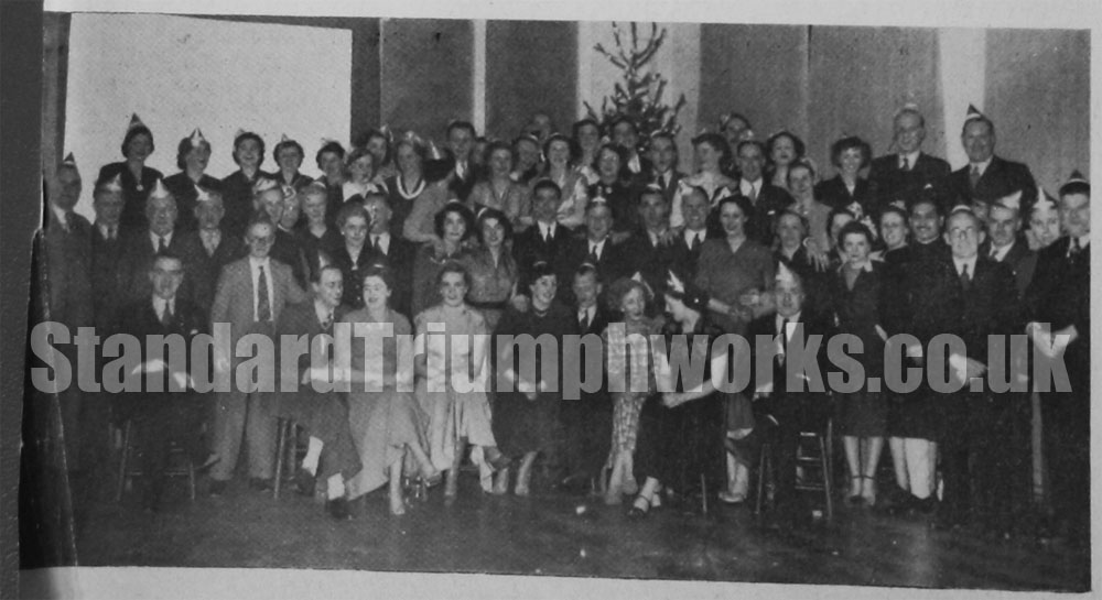Mr. Turnbull, Service Manager. and Mr. Whitfield, Repairs Manager, were present and Mr. and Mrs. Cleydon paid the party a visit during the course of the evening. A supper was provided and followed by a film show which included the record of the visit to Holland by the Standard Motors British Legion Pipe Band. This was followed by dancing interspersed with games of various kinds, prizes being presented by Mr. Turnbull. After a further film show and light supper, every lady was presented with a miniature bottle of liquor. Games continued until about 10:30pm when the evening was completed by dancing until midnight. It was generally agreed that this was a most satisfactory method of entertainment for the department at Christmas, and it is hoped that it will be the forerunner of many such enjoyable evenings.