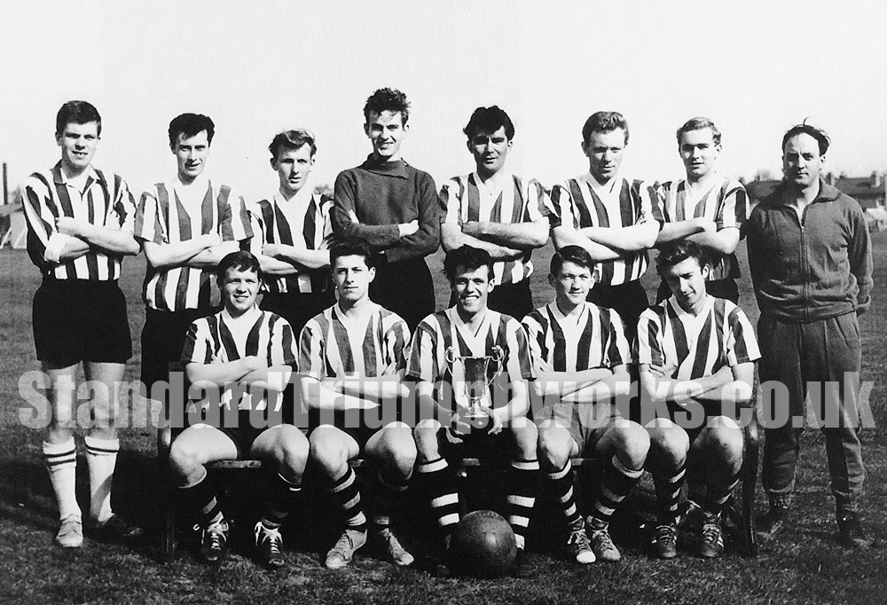 With eight minutes gone, Moreton on the right wing went down the wing, beat his back, drew the centre-half, beat him and although falling down, put in a good shot which the Lockheed goalkeeper brilliantly parried but couldn’t hold. Morgan rushed in to place it in the net for Standard. Both Morgan and Moreton disappeared as their colleagues swarmed over them with congratulations!