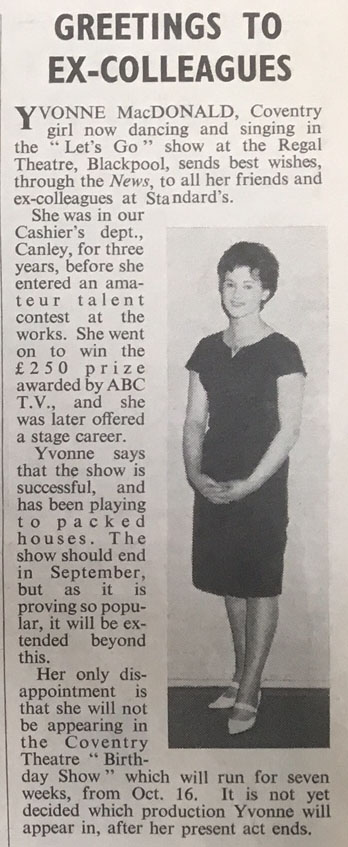 My name then was Yvonne MacDonald. My friends in the office entered my name in the Sing Along With Joe competition that was in 1962. I won that and the prize was £250 – a lot of money in those days.